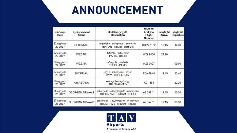 ივლისის ფრენების განრიგი კვლავ განახლდა
