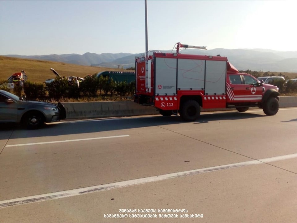ავტომაგისტრალზე ქალაქ გორის სიახლოვეს ავტომანქანას ცეცხლი გაუჩნდა
